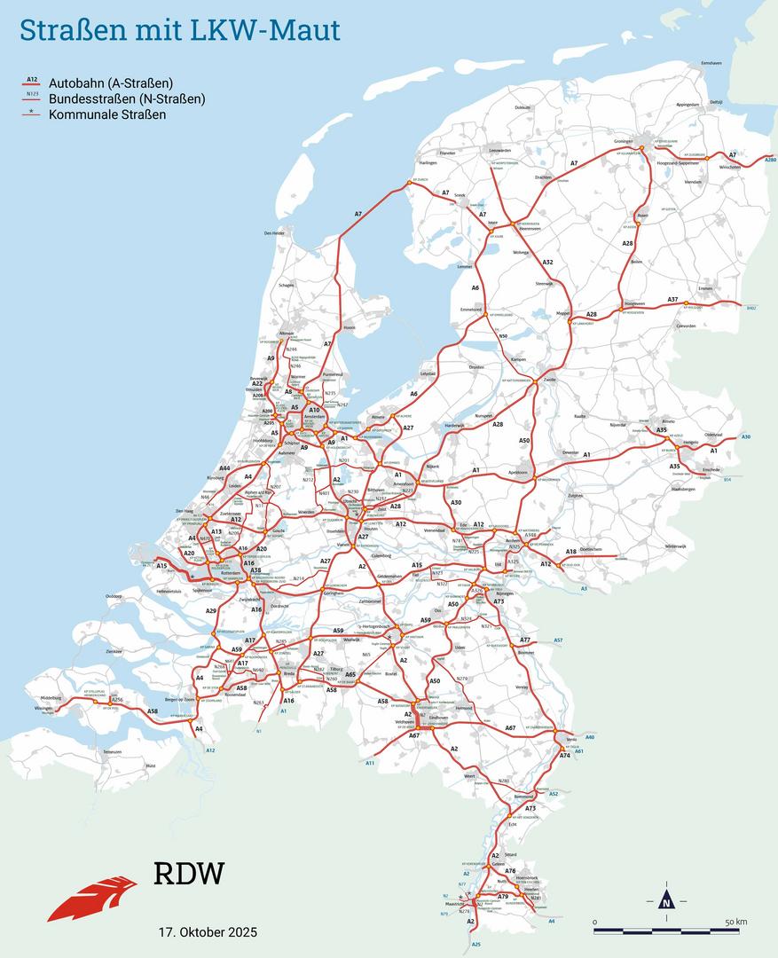 - Die Niederlande werden ein streckenbasiertes Mautsystem für Lkw mit einer technisch zulässigen Gesamtmasse von über 3,5 Tonnen erheben.